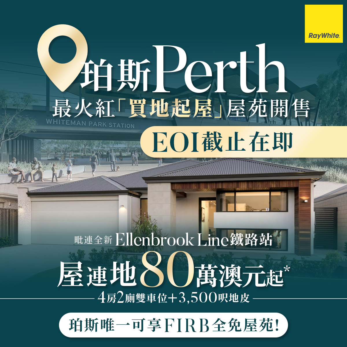 根據SQM Research數據顯示,珀斯樓市熾熱,房屋空置率低至0.7%*,反映房屋供應緊張,一房難求。Ray White呈獻珀斯「買地起屋」精讀班,由專家深入解構「買地起屋 」優勢及玩法Step-by-Step完整教學,更會詳盡分析澳幣低水下的澳洲樓市及投資策略!現場更會介紹「Dual Key」新玩法,是香港市面上非常少見的獨立屋項目,教路如何將普通的買地起屋方案以「一拆二」的形式建造及放租,實現「一間屋,收兩份租」的租值最大化竅門。