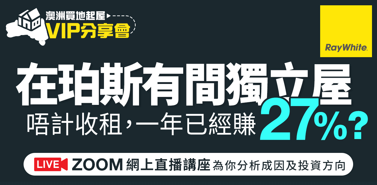 澳洲房地產市場瞬息萬變,供應稀缺。立即登記參加分享會,獲取第一手市場數據與專家建議,為你的資產配置增值!