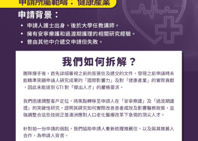 ✅團隊接手後,首先詳細審視之前的拒簽信及遞交的文件,發現之前申請時未能精準突顯申請人研究成果的「國際影響力」及對「健康產業」的實際貢獻,因此未能達到 GTI 對「傑出人才」的嚴格要求。