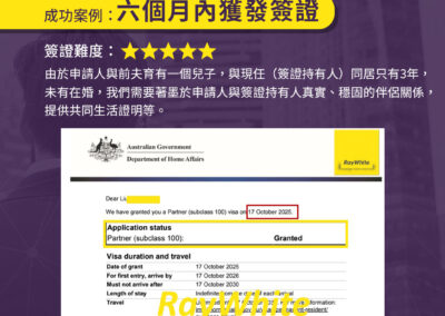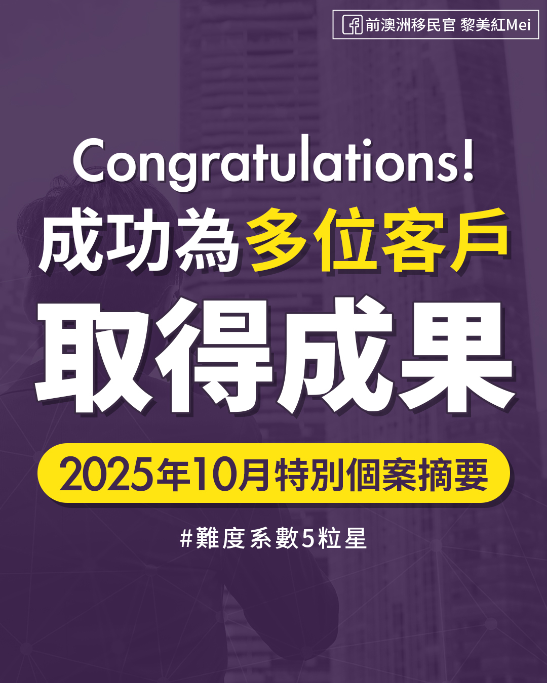 過去的10月,我們為不少客戶成功取得移民澳洲的入場劵,Congratulations!以下我們抽取特別個案案例,有興趣申請的話歡迎與我們聯絡!