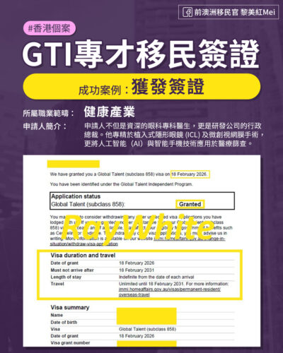 澳洲專才計劃GTI簽證