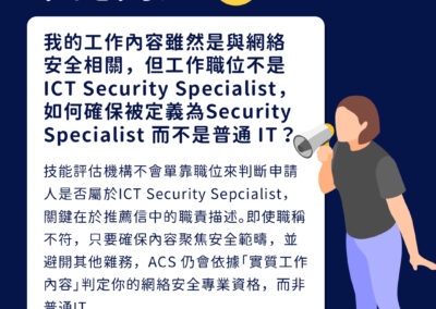 常見問題:我的工作內容雖然是與網絡安全相關,但工作職位不是ICT Security Specialist,如何確保被定義為Security Specialist 而不是普通 IT?