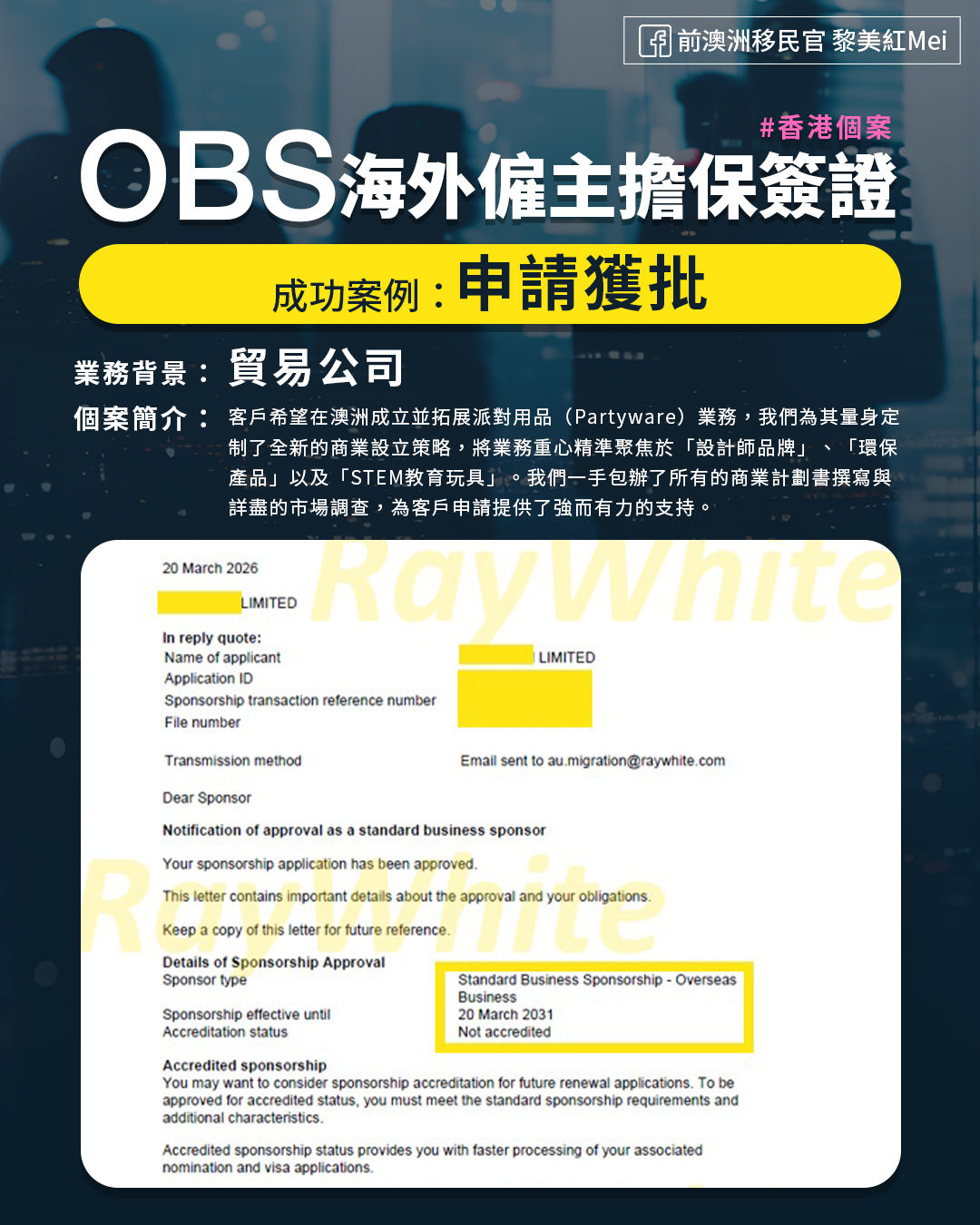 OBS海外僱主擔保簽證 #香港個案