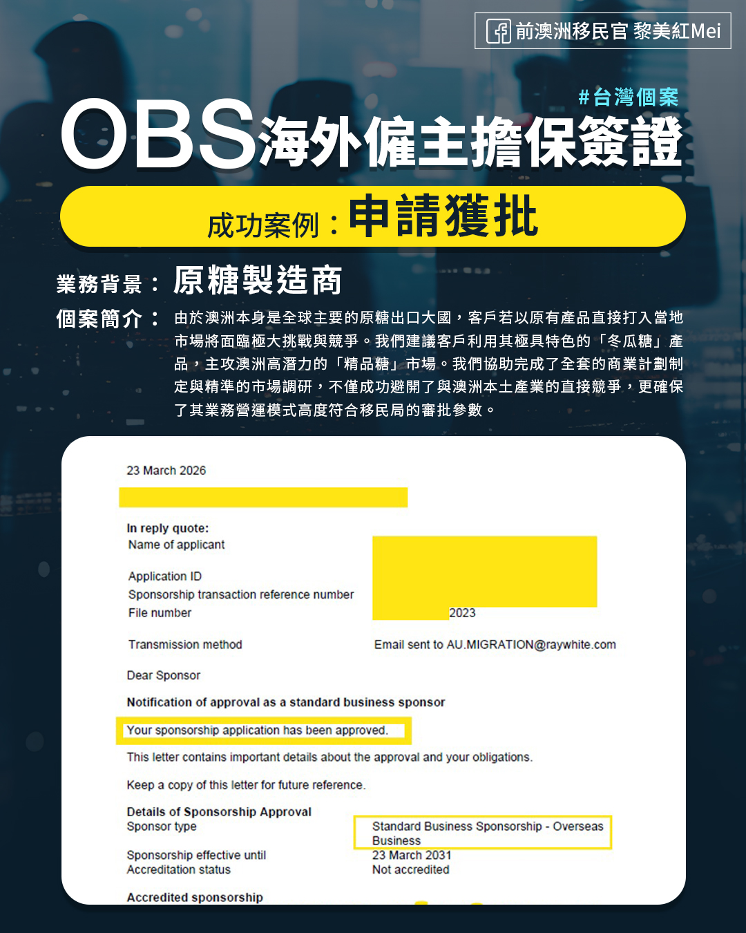 OBS海外僱主擔保簽證#台灣個案