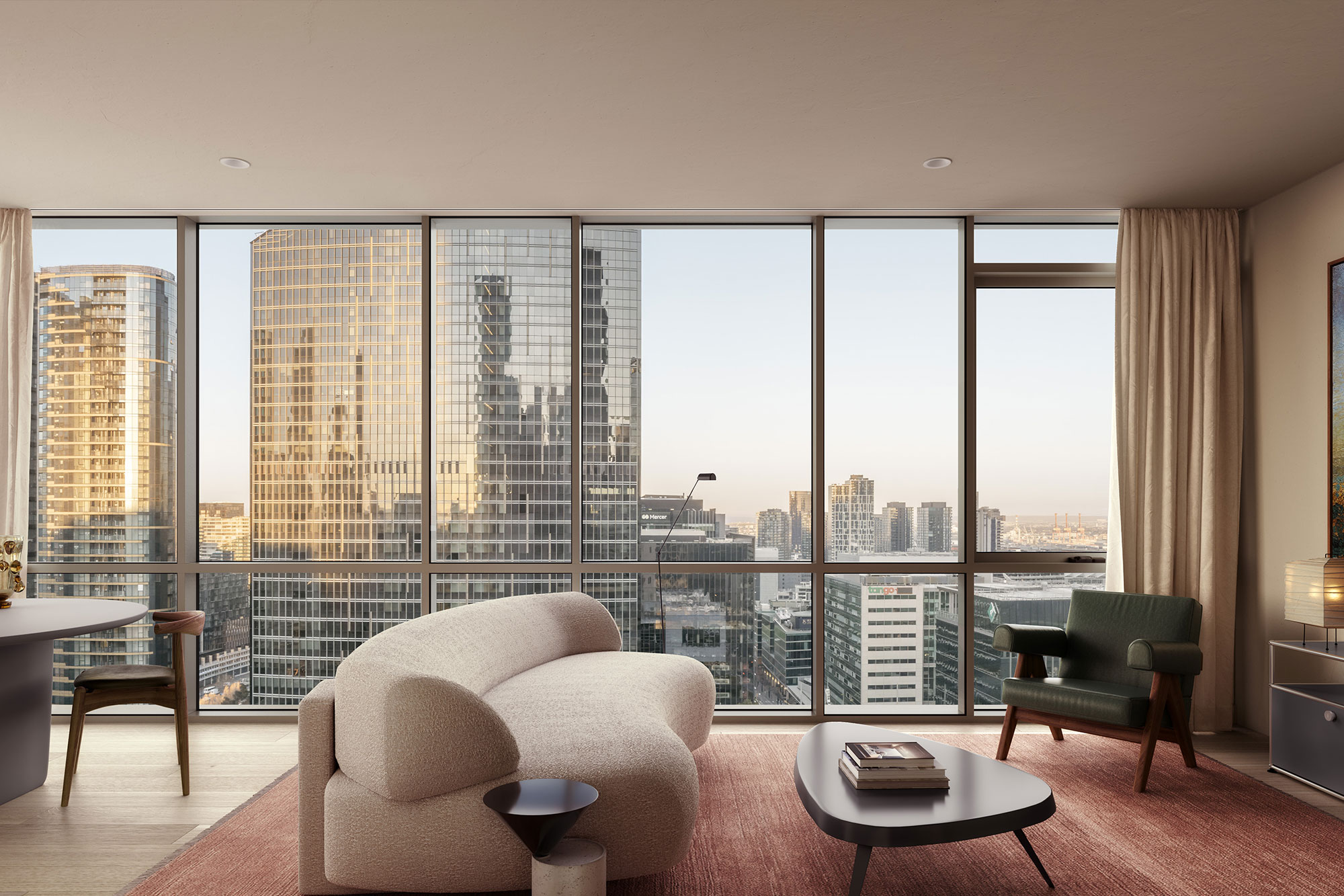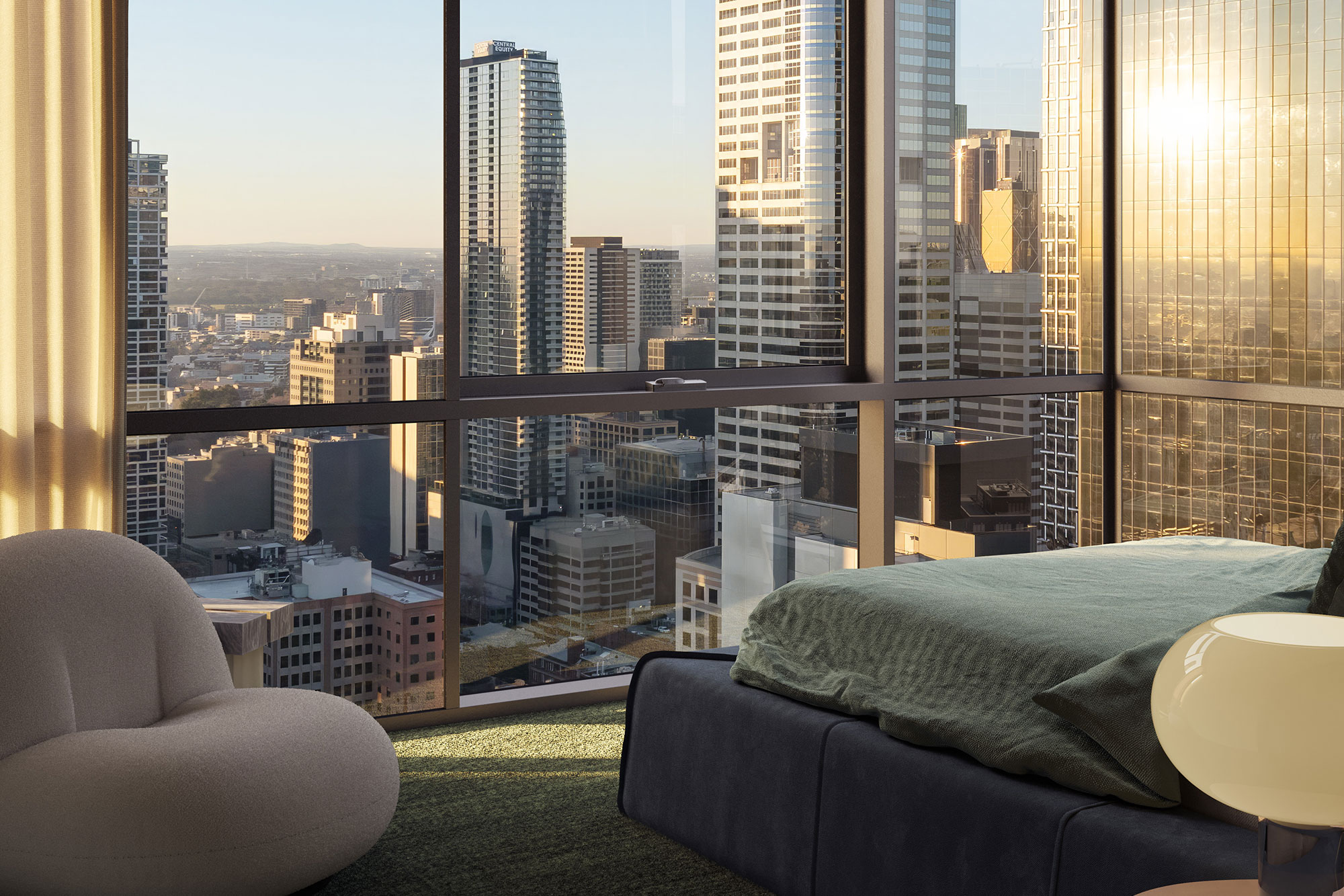優越的地理位置與交通:項目坐落於 Collins Street西端,這是一個久負盛名的地段,亦是墨爾本最核心的位置。它正對Southern Cross Station,這是墨爾本的核心交通樞紐。此外,門口即為免費電車區,出行非常便利。